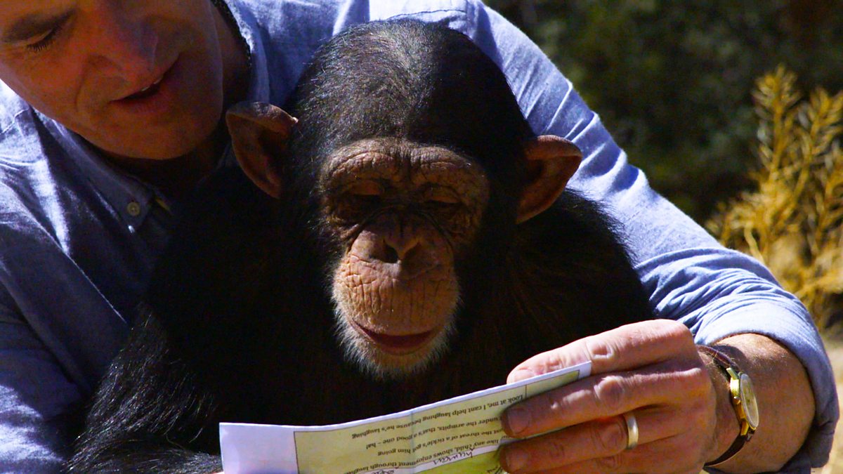 Eli the Chimpanzee gives Gordon some editorial input on his notes.