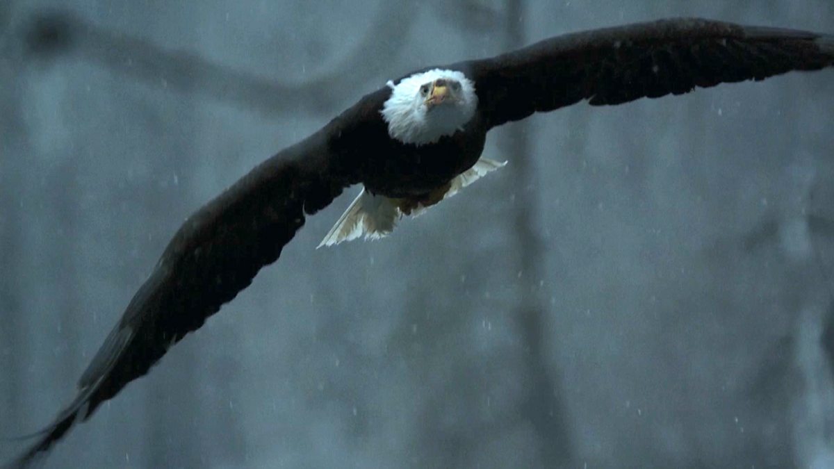 Bald eagles fight over the Chilkat River's late salmon run as winter fast approaches.