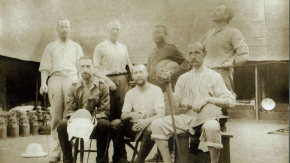 (Photo: Captain Herbert Walker seated on the far right, with some of the looted Benin bronzes in the background. Credit: Mark Walker.)