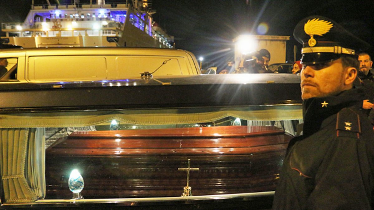(Image: The coffins of immigrants who died trying to reach the Italian coast arrive from Lampedusa to Porto Empedocle, 11 February 2015. Credit: MARCELLO PATERNOSTRO/AFP/Getty Images)