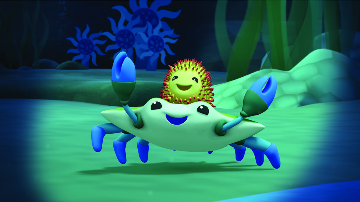 Mae Capten Cwrwgl a Harri yn ymchwilio i helynt ar greigiau cyfagos: mae cranc a draenog môr, sy'n byw ar gragen y cranc, yn methu'n lân â chyd-dynnu. The Octonauts and the Crab & Urchin.