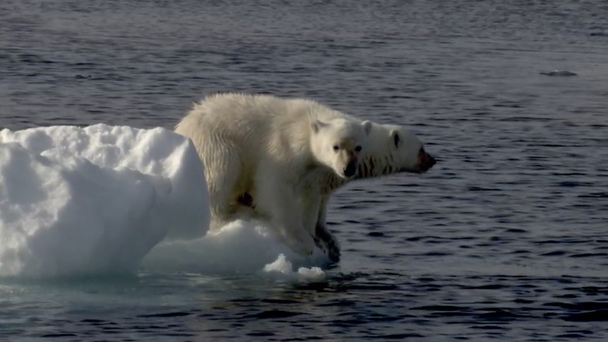 Two polar bear cubs take the plunge in their first swimming lesson.