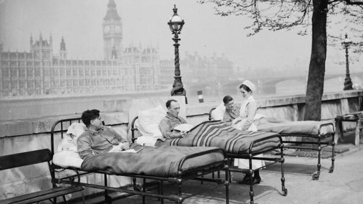 Photo: Tuberculosis patients from St. Thomas' Hospital rest in their beds in the open air by the River Thames in 1936. (Photo by Fox Photos/Getty Images)