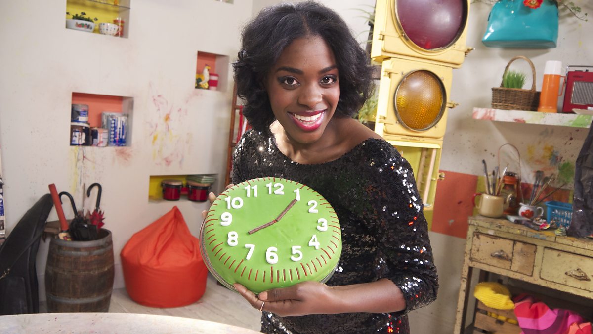 Sabrina examines different ways to measure 5 minutes and measures Tempo’s 5 minute shower. Children discuss the devices they use to measure 5 minutes, such as a clock, a timer on a tablet, a kitchen timer. They also talk about when that is useful, for example in turn taking. Sabrina and the children make a clock cake for Tempo’s birthday, complete with 12 numbers and 60 little lines. They work out how to show 5 past on the cake clock, carefully counting the little lines and relate this to the number of fingers on one hand. Six people with 12 hands are gathered around the clock cake, and each hand could show the 5 minute intervals. We see some preparation moments as Sabrina gets ready for her big song with Tempo.