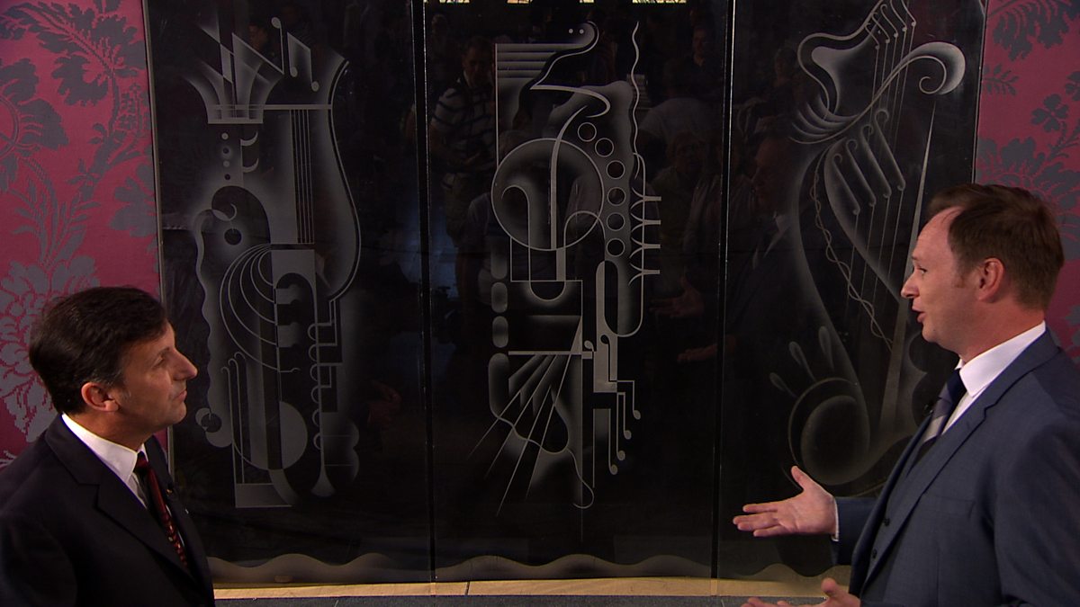 Will Farmer admires a collection of engraved glass panels that once graced Liverpool’s Philarmonic Hall.