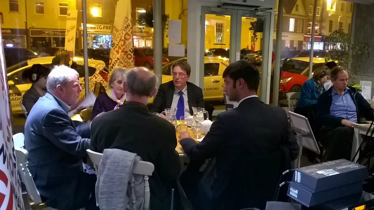 Listen to BBC Radio Oxford's Big Ballot Box Tour 2015 general election debate recorded in Thame. Howard Bentham chairs the discussion with the Henley constituency candidates: LIBERAL DEMOCRAT - Sue Cooper, CONSERVATIVE – John Howell, LABOUR – Sam Juthani, and GREEN – Mark Stevenson. For personal reasons UKIP's Christopher Jones was unable to attend the evening, so the following day, David Prever spoke to the Chairman of UKIP for the Henley Constituency, Ken Artlett, which you can hear at the end of this recording.