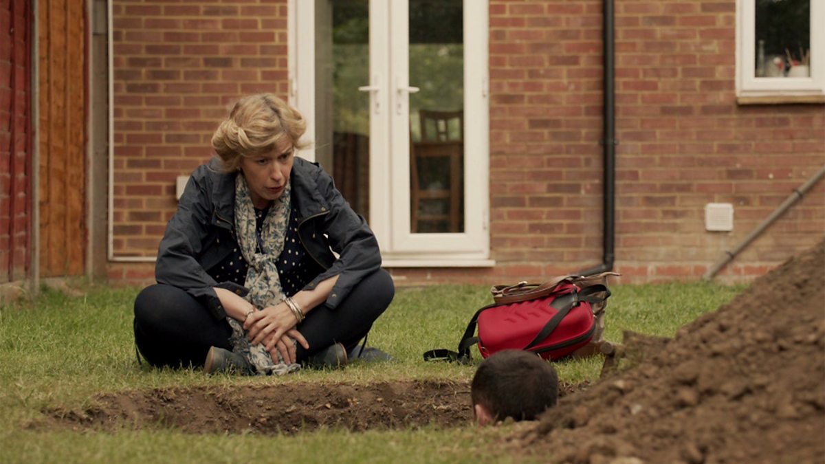 Jack has dug a huge hole in his garden and he's just sitting in it.