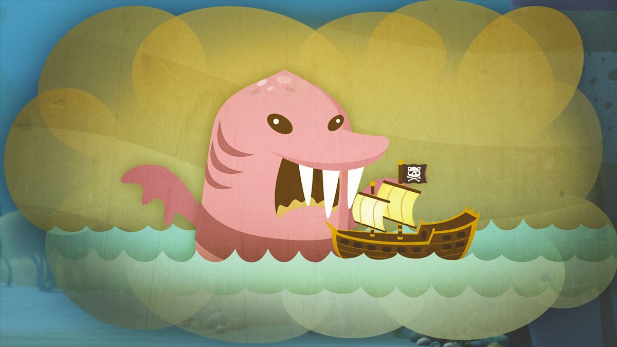 Beth sy'n achosi'r tyllau rhyfedd yn offer yr Octonots? Mae'r Octonots yn gweld mai tri siarc cylchfrath drwg sy'n gyfrifol - mosgitos y môr! The Octonauts and the Cookiecutter Sharks.