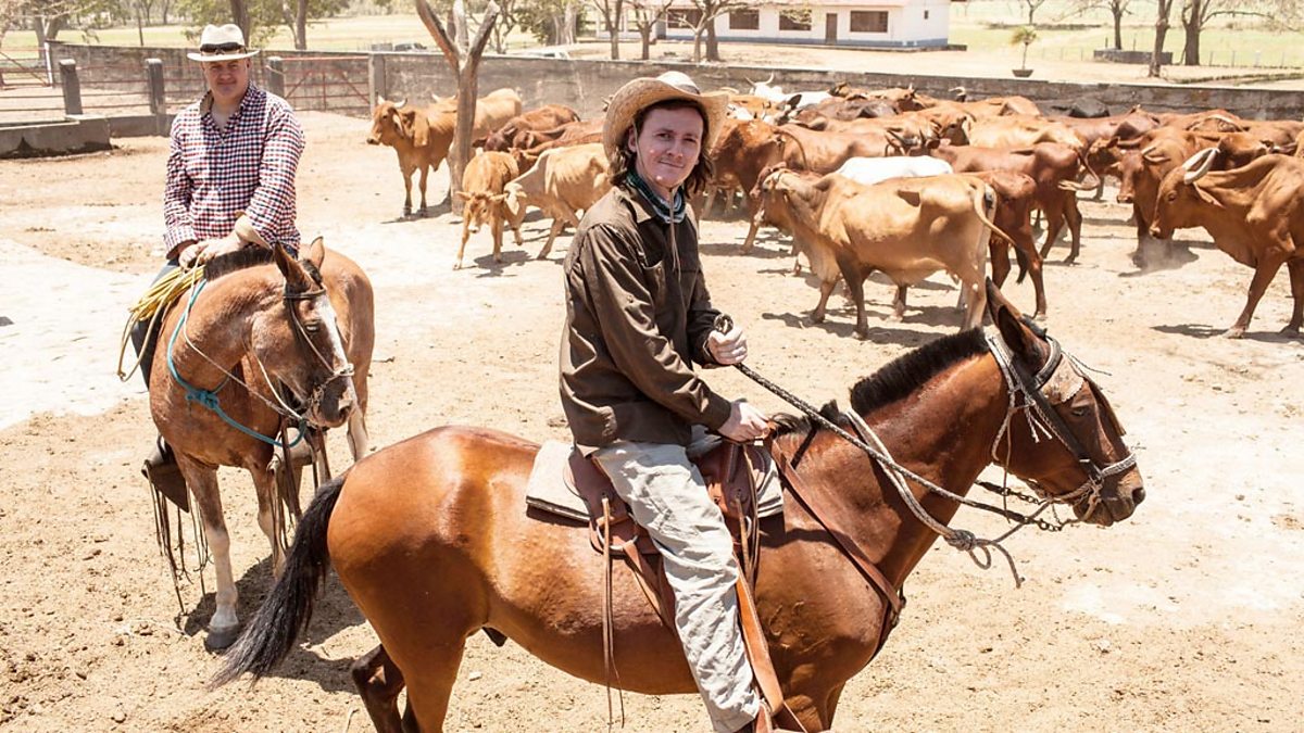 Sabaneros, traditional Costa Rican cowboys, attempt to teach Dara and Ed how to lasso calves at the El Cojito ranch and Dara makes the fatal mistake of letting go of the rope.