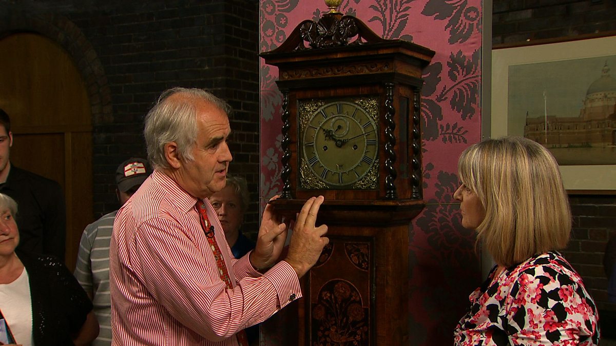 Richard Price admires a rare seventeenth century long case clock.