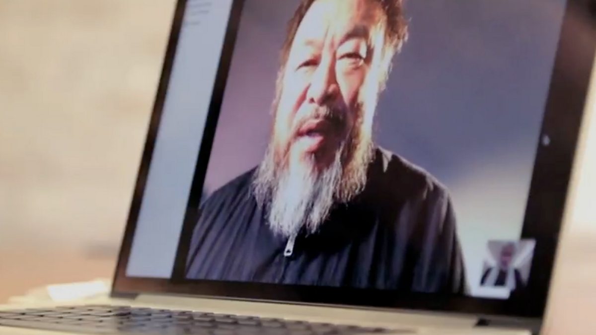 Chris Dercon, director of Tate Modern, interviews Chinese artist Ai Weiwei online. They discuss how Ai Weiwei is unable to leave China, but has created a studio in Berlin.