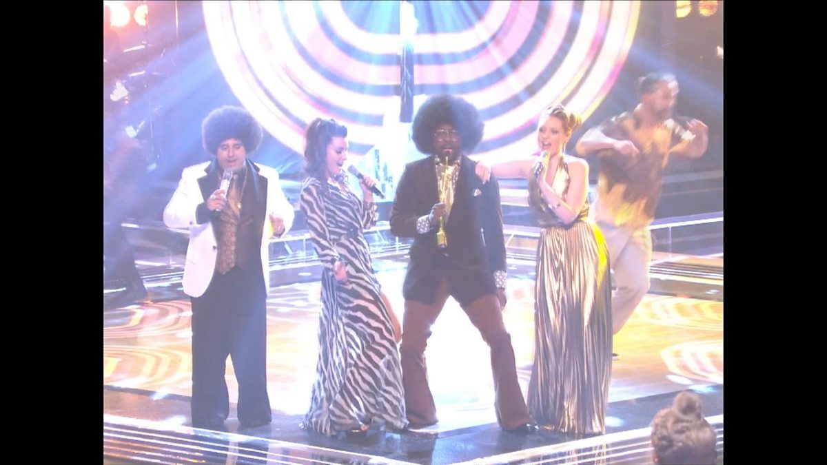 Lucy, Sheena and Vikesh perform a mash-up of KC and The Sunshine Band's classics; 'That's The Way (I Like it)' and 'Get Down Tonight', together with their coach, will.i.am, bringing some 70s funk to the Live Semi-Finals.