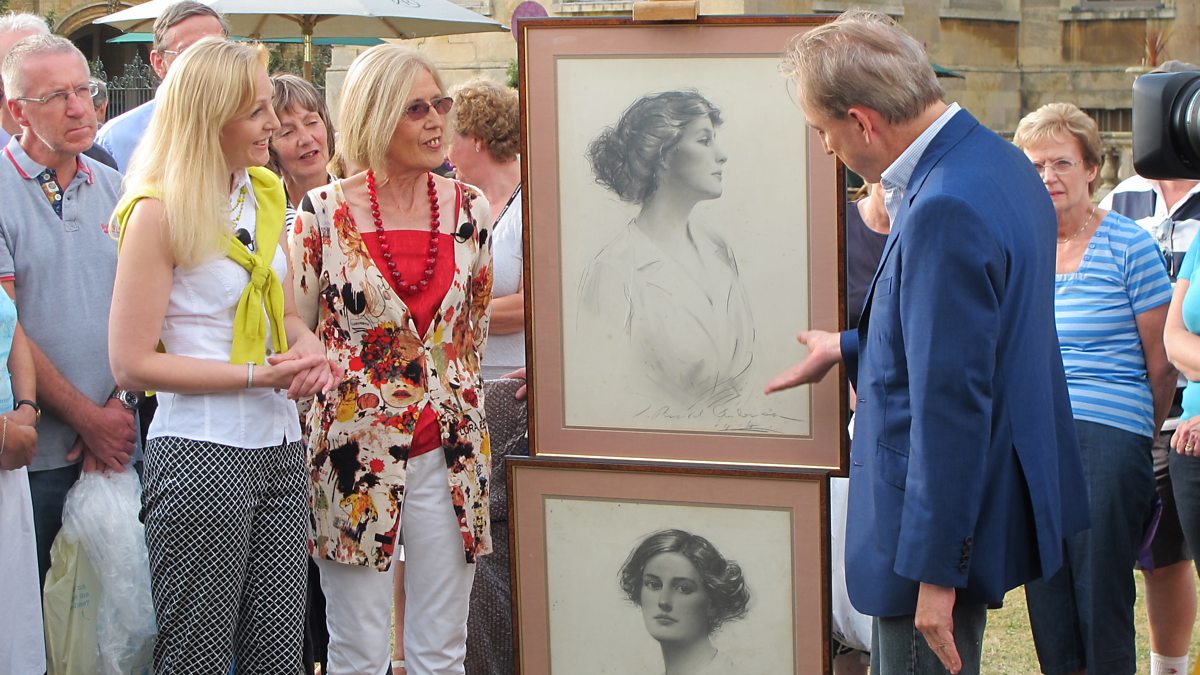 Arts specialist Philip Mould meets previous Roadshow visitors who have brought along two Edwardian portrait drawings.