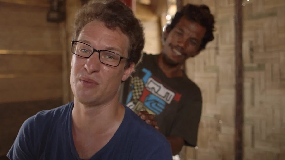 Will joins his host Kabei to make an offering the sea god Bojango. The ceremony is run by the sandro - the village witch doctor and involves dropping alcohol into the a sacred area of the sea.
