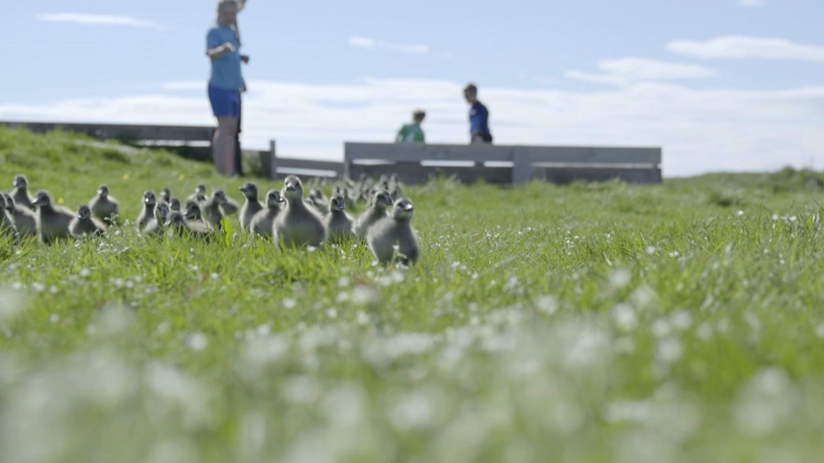 Thor’s family take the eider ducklings down to a pool for their daily swimming lesson.