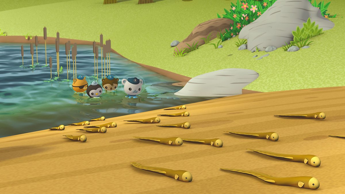 Mae'r Octonots yn teithio ar hyd afon beryglus er mwyn helpu llysywen ymfudol ar ei thaith anodd. The Octonauts travel up a treacherous river to help a migrating eel on a difficult journey