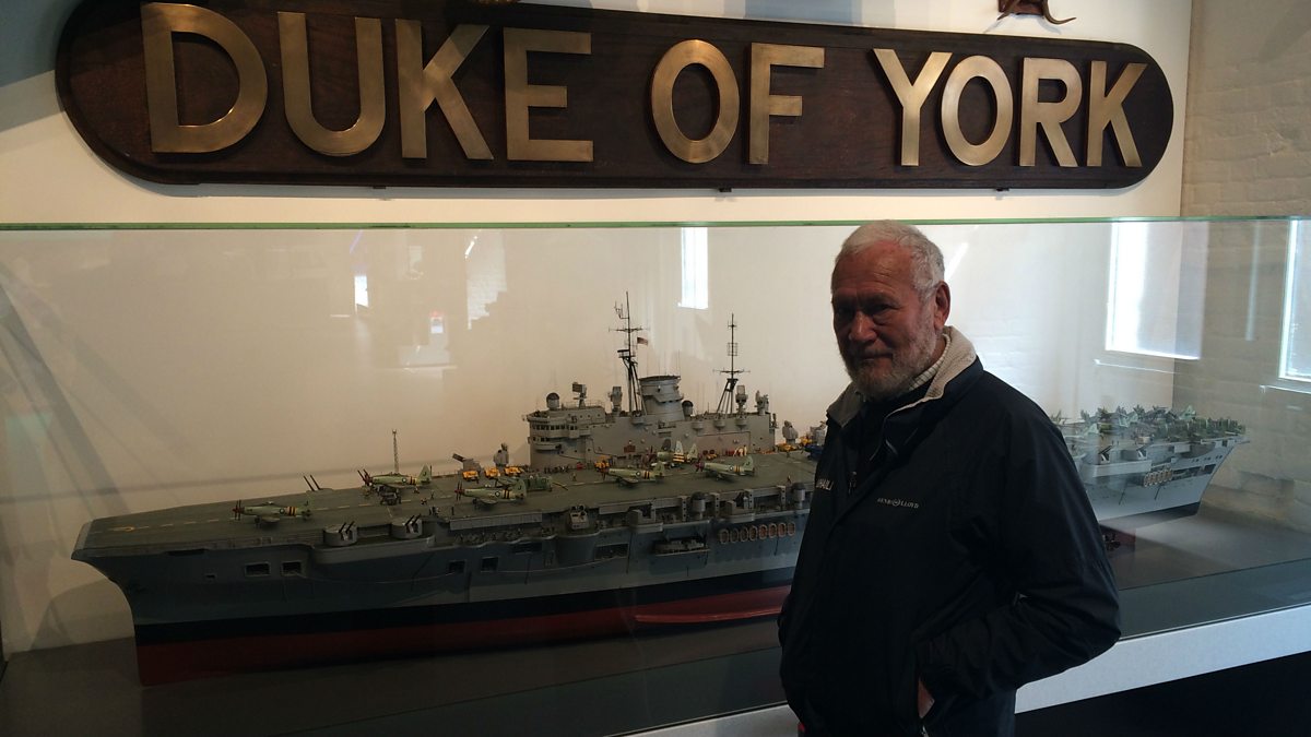 He tours the exhibits, learning about the role of the Royal Navy in the First World War.