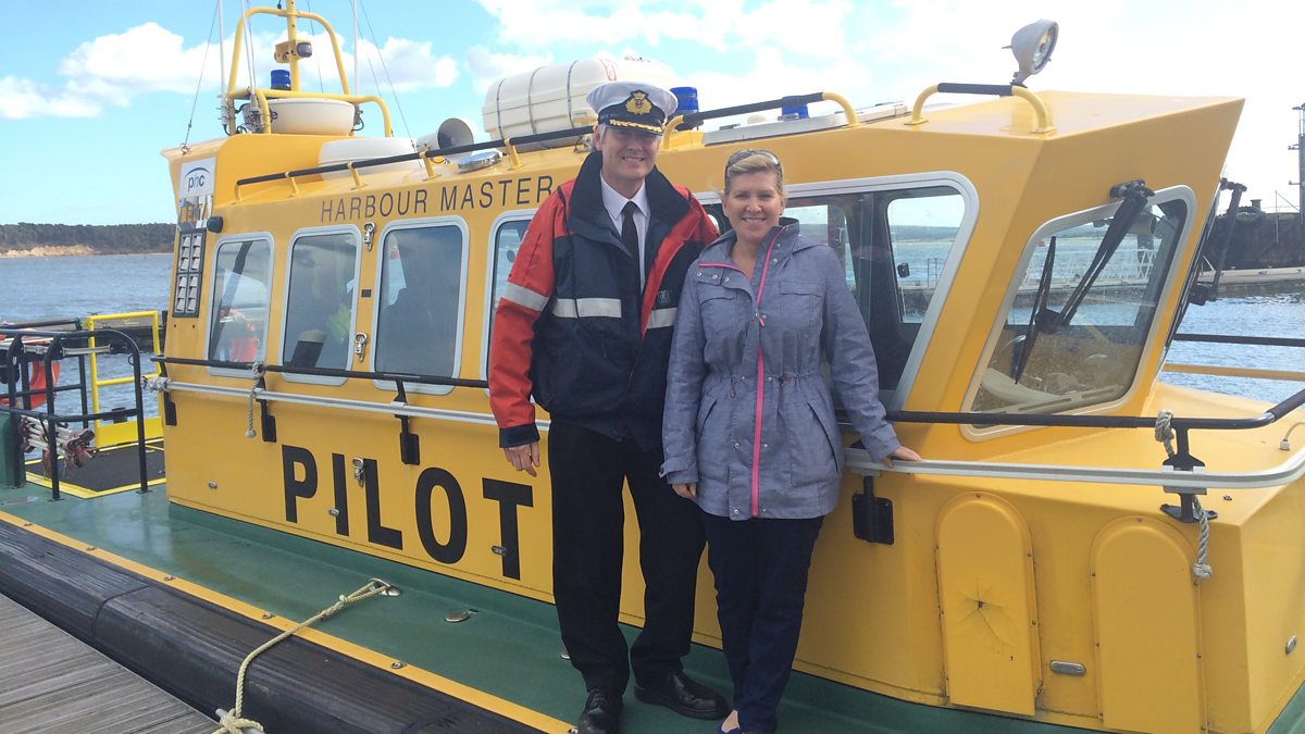 Shelley Jory-Leigh boards the Poole Harbour Commissioners’ launch for a tour of the harbour.