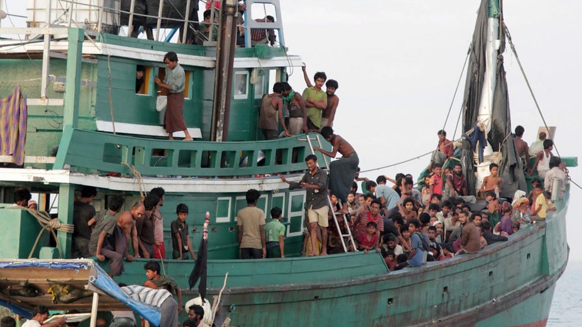 (Picture: Migrants sit on their boat off Indonesia as they wait to be rescued / Credit: AP)