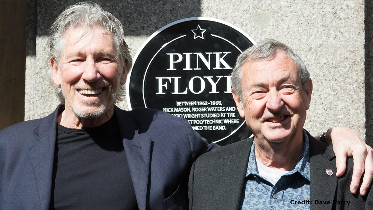 Roger Waters and Nick Mason unveil the Regent Street Pink Floyd Heritage Plaque.