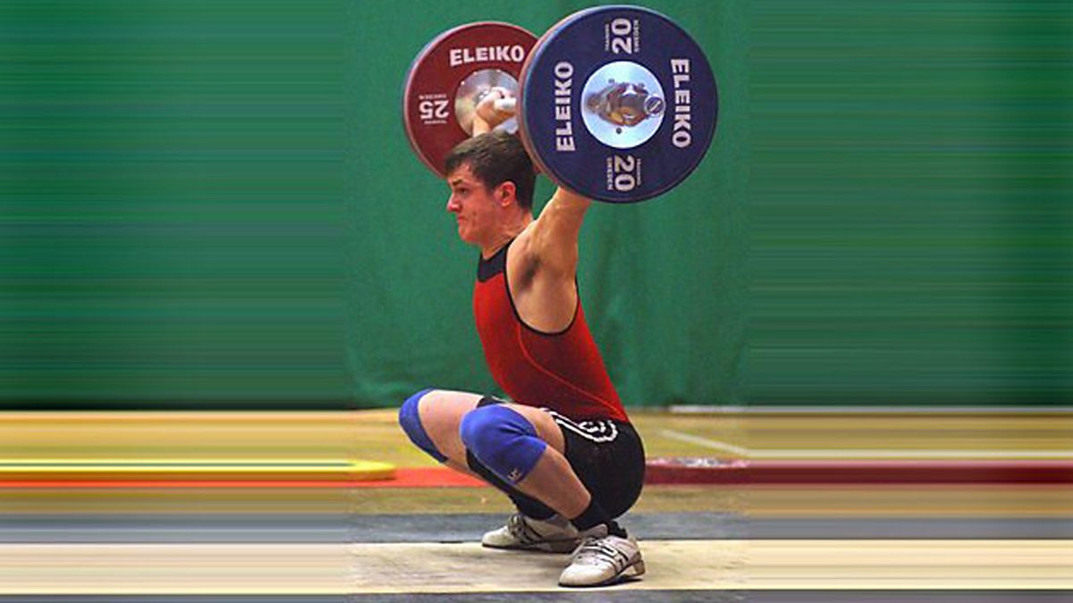 Ifan yn sgwrsio gyda'r codwr pwysau Gwilym Sion Pari o Aberdaron