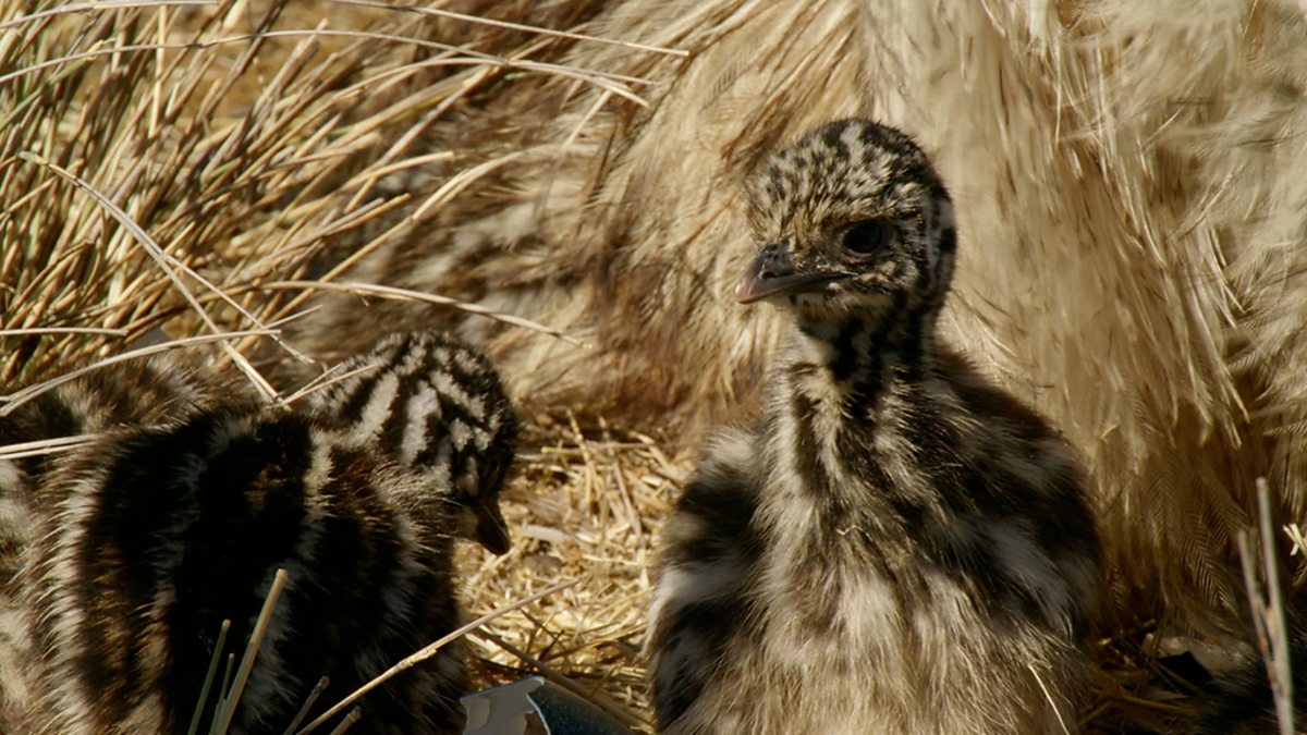 An emu dad has to choose between several thirsty chicks and just one unhatched egg.