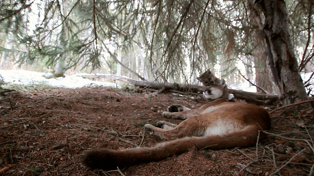 Mountain lion F51 is your classic mum, giving her kittens all the love they need.