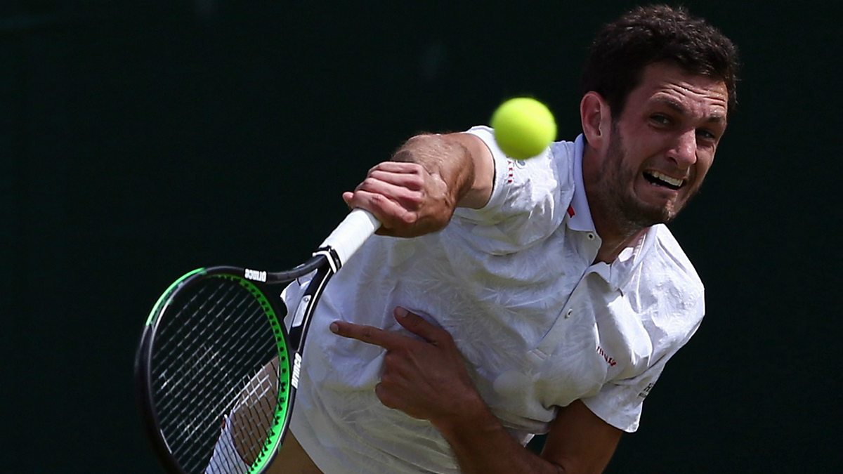 Great Britain's James Ward takes on Jiri Vesely in the second round of Wimbledon.