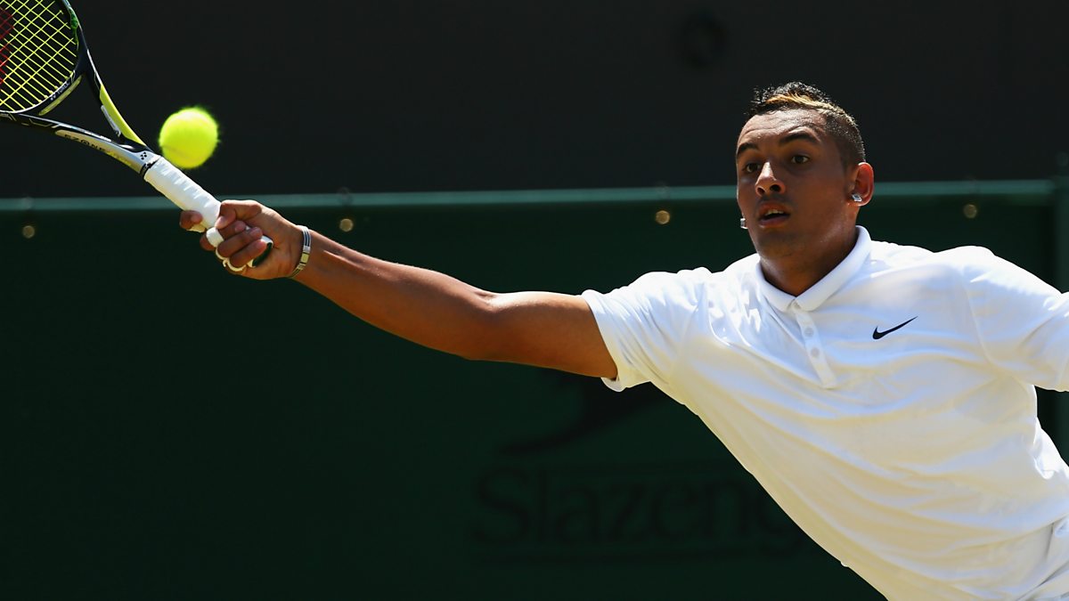 Highlights of the third round match between Nick Kyrgios and Milos Raonic.