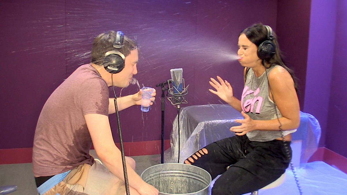 Geordie Shore's Vicky Pattinson shows some excellent spraying technique, as she and Chris Stark get very wet laughing out water, while Scott Mills plays the innuendos