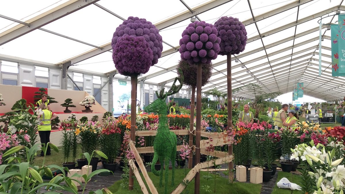 BBC Radio Oxford's Phil Mercer with Sue McNally from Sulgrave Manor and Pat Havers from Waterperry Gardens take a tour of the Hampton Court Palace Flower Show.