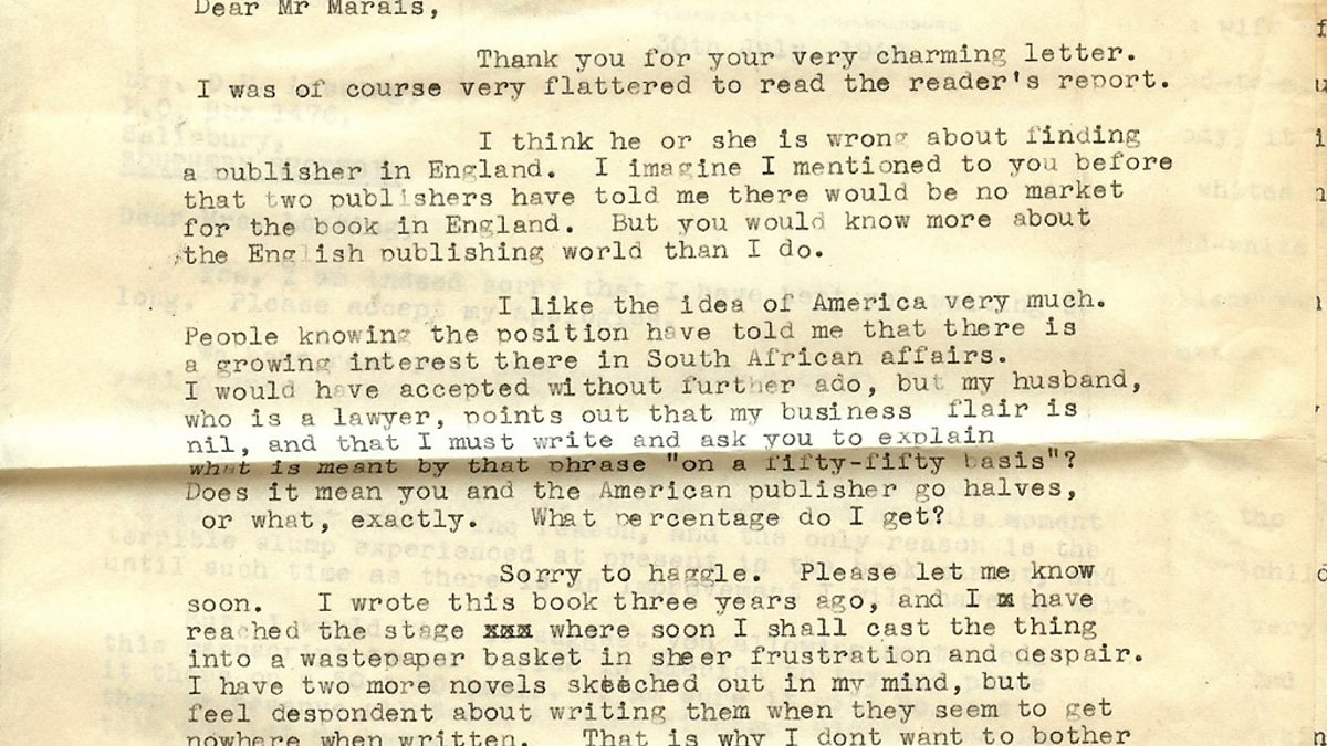 Correspondence from Doris Lessing. Courtesy of Doris Lessing Estate