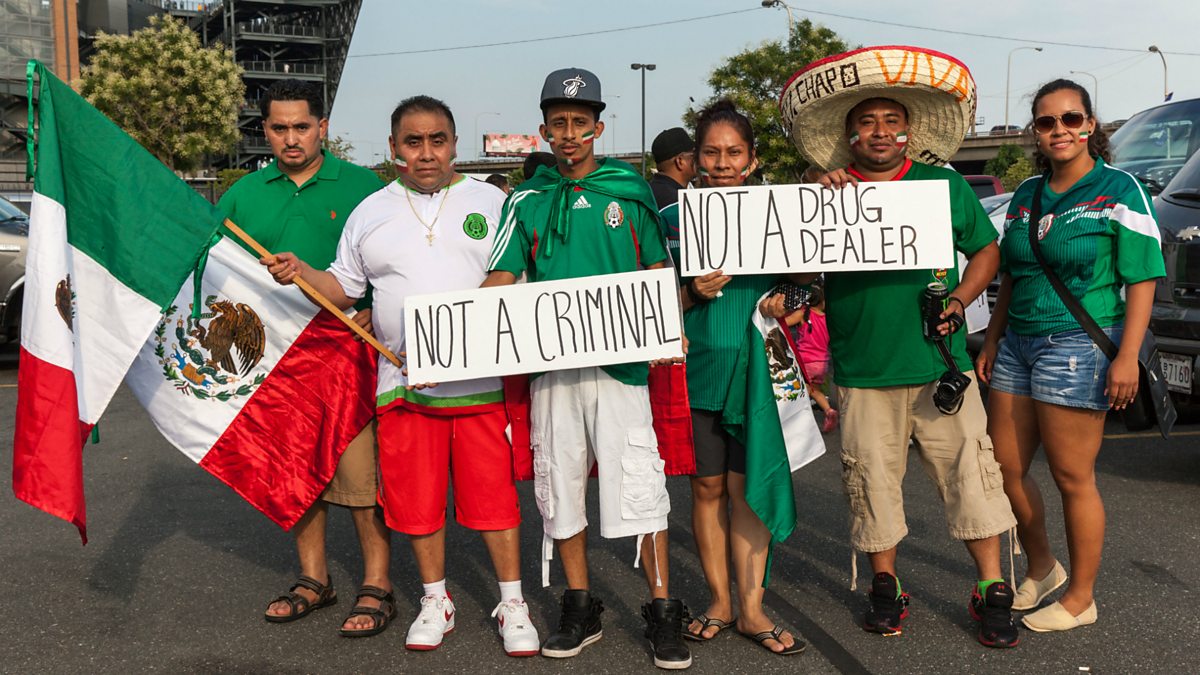 (Photo: Mexican football fans hold signs alluding to a June comment made by Republican presidential candidate Donald Trump. He said: ‘When Mexico sends its people, they’re not sending their best... They’re sending people that have lots of problems…They’re bringing drugs. They’re bringing crime. They’re rapists. And some, I assume, are good people’. Credit: Ricardo Aca)