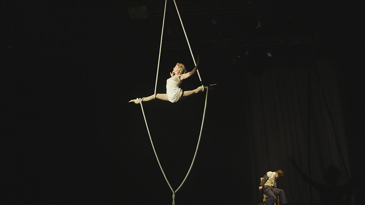 Smoke and Mirrors: Laura Stokes performs a high-flying contortion act