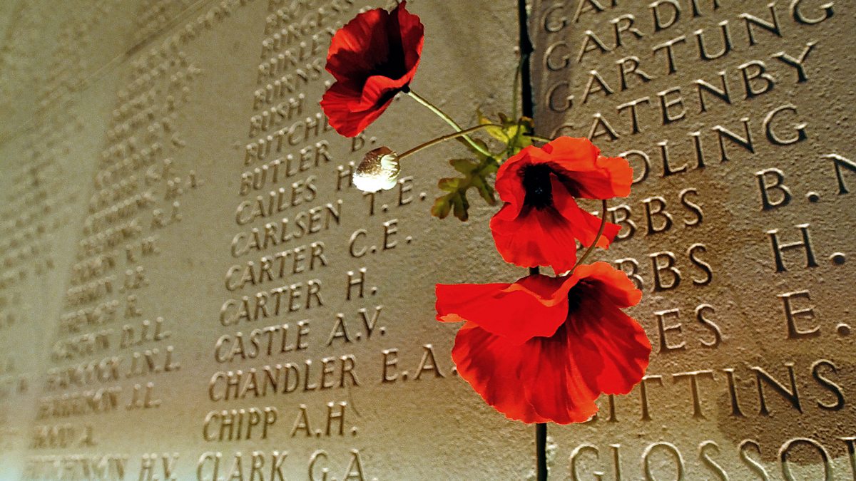 (Photo: Poppies pegged on a wall bearing the names of soldiers who lost their lives in World War One. Credit: Philippe Huguen/AFP/GettyImages)