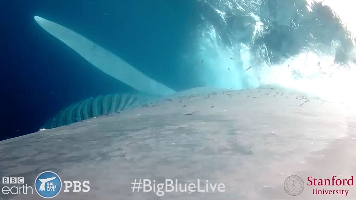 The Goldbogen Lab at Hopkins Marine Station of Stanford University attached cameras to whales to study lunge-feeding behaviour. Big Blue Live have been on the boat with them.