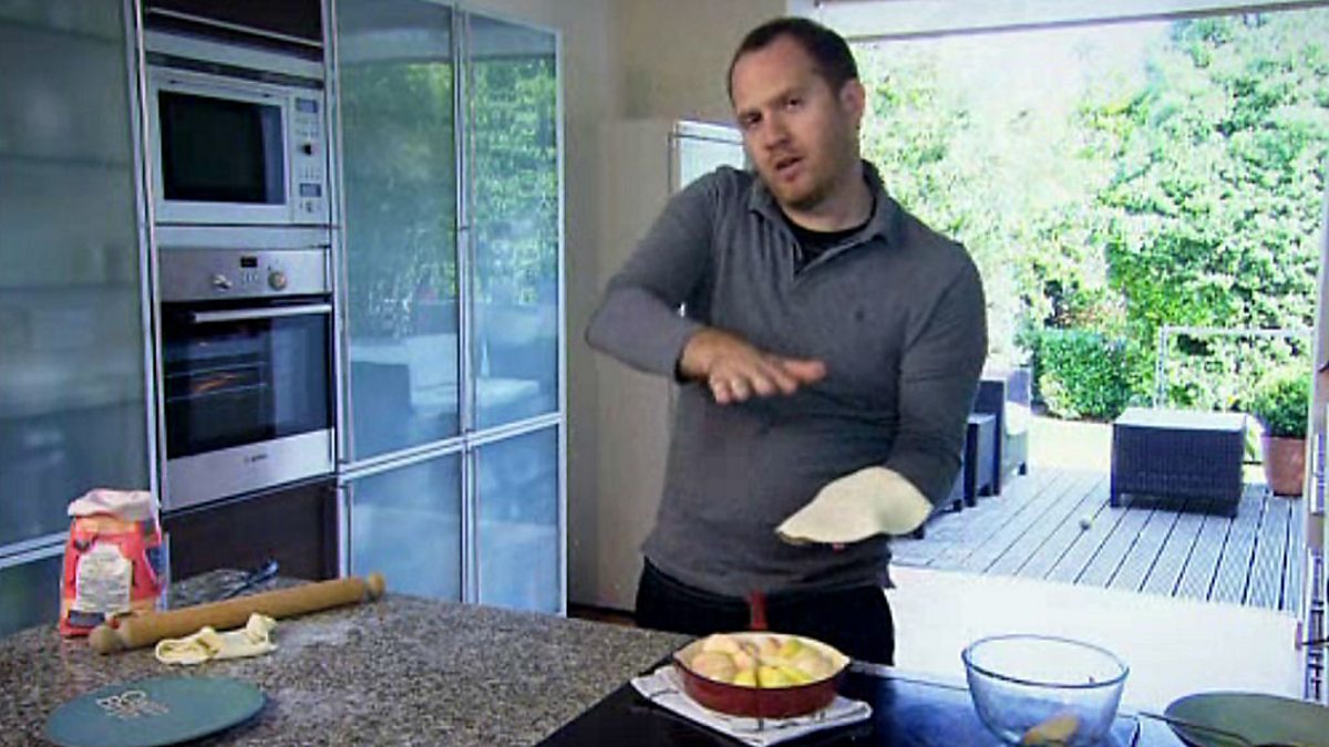 Afalau fydd y canolbwynt heddiw, a bydd y cogydd Bryn Williams yn coginio fflapjacs afal, afalau wedi eu pobi a phwdin moethus 'tarte tatin' hefo hufen Calvados. Bryn cooks with apples.