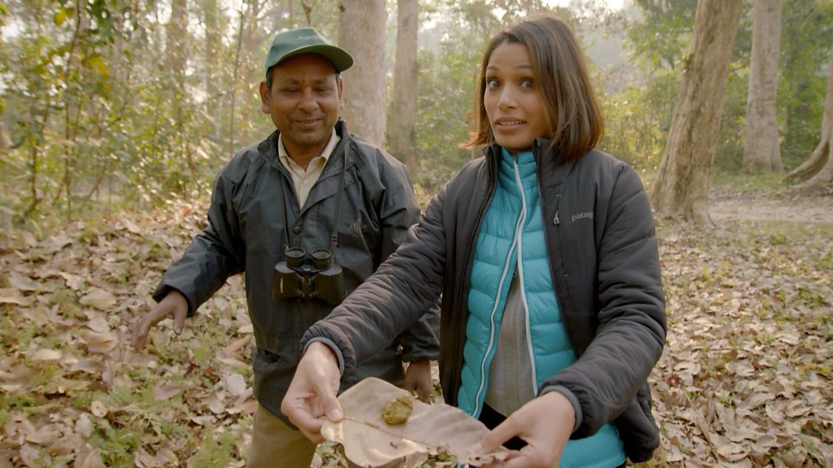 Freida Pinto and gibbon expert Deben Borah find a family of gibbons but when we get too close they make their feelings known.