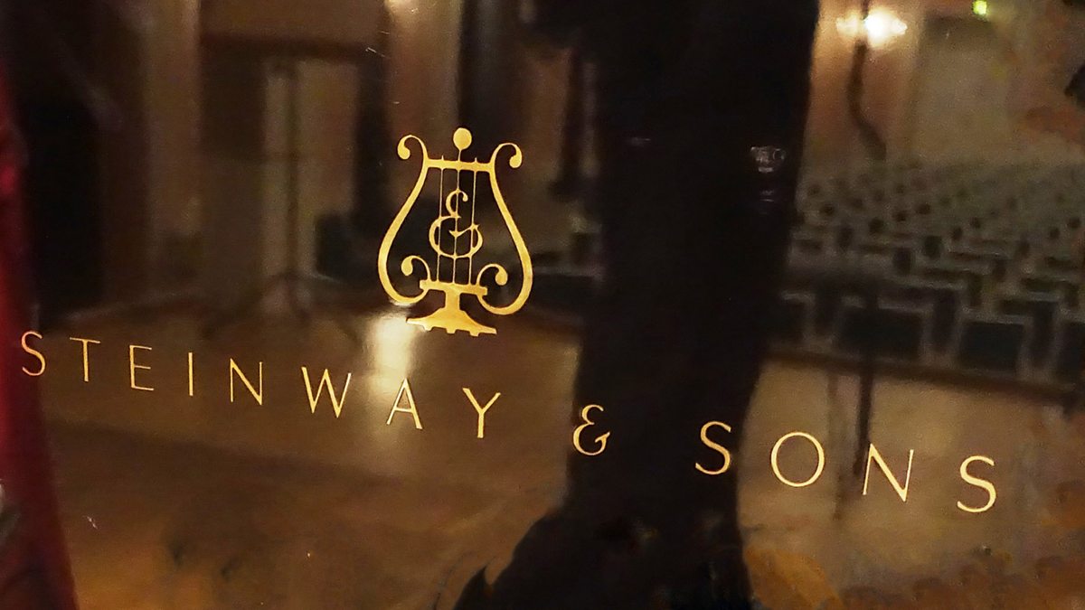 (Photo: Steinway and Sons logo on a piano)