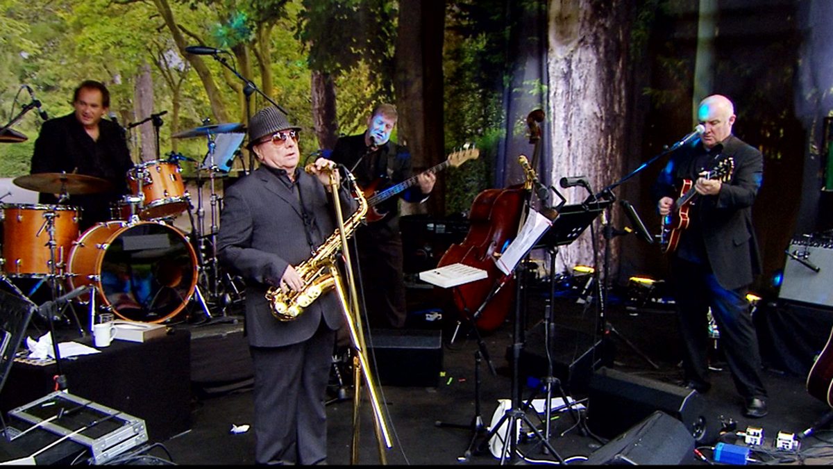 Chris Farlowe joins Van on stage to sing Born to Sing