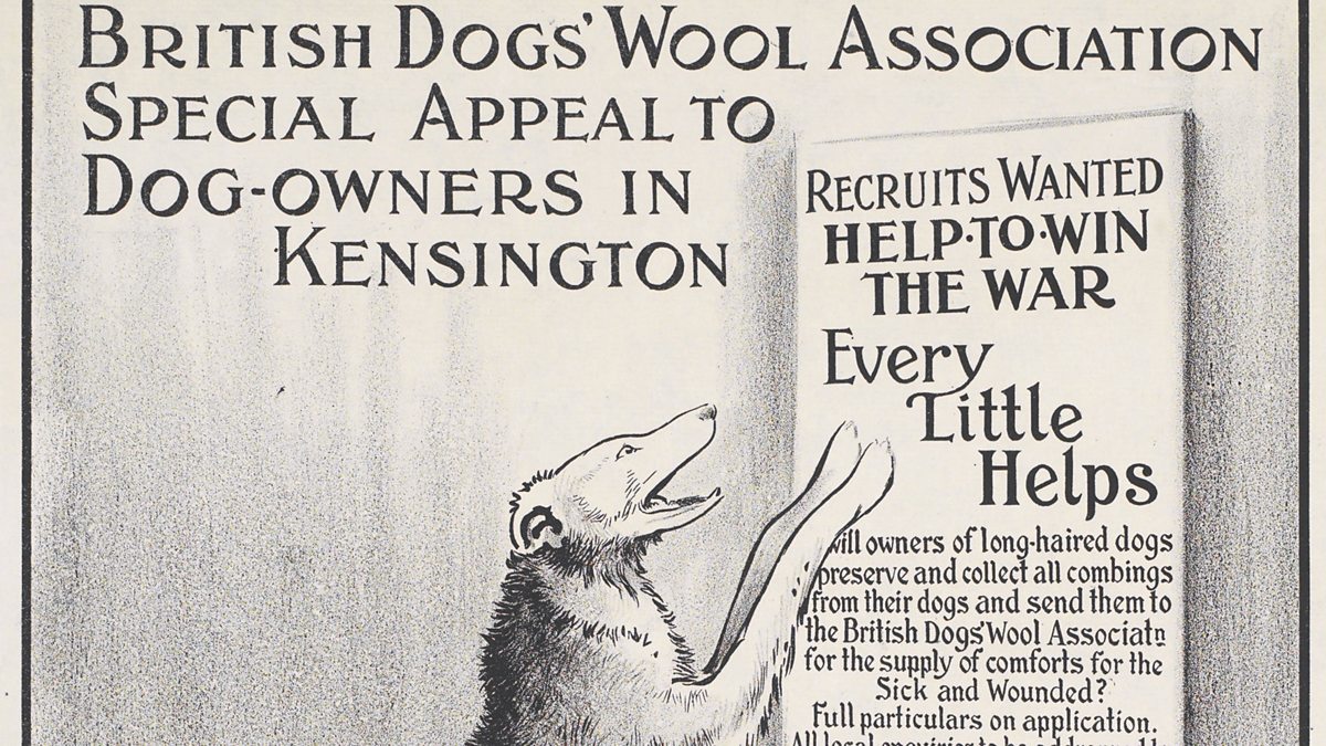 During World War One, a poster appeared calling on the dog owners of Kensington to send fur combings to the British Dogs Wool Association.