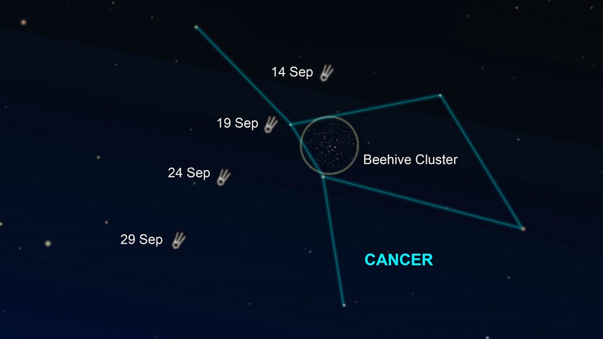 Pete Lawrence's guide to the night sky this month. Including the appearance of Comet 67P - with the Rosetta probe orbiting around it - and a total lunar eclipse on 28 September.