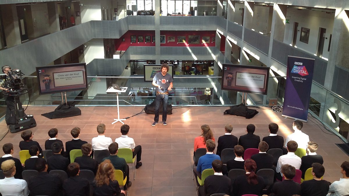 Pupils from Garnock Academy record audio interviews at the BBC Make it Digital event.
