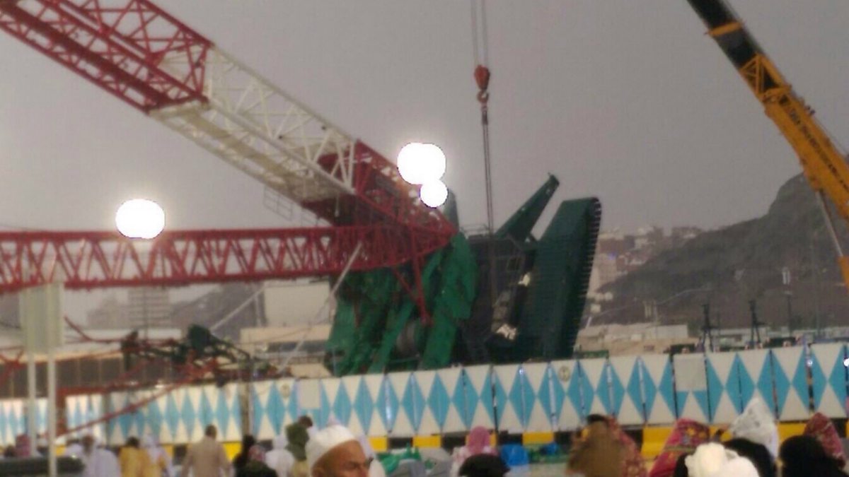 As thousands arrive in Mecca ahead of this year's Hajj a crane smashes through the roof of the grand mosque killing dozens and injuring more than a hundred more. Eyewitnesses say extreme weather may have caused the accident. Sajid from Blackburn was there with his mother. He says the scenes he witnessed were "like a movie" and the storm was the worst he has seen in 15 years of visiting Saudi Arabia.