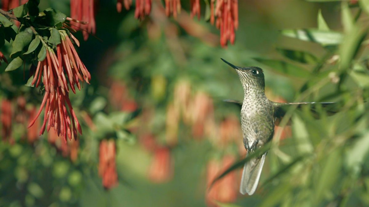 Super high-speed filming shows how hummingbirds battle over flowers for nectar to survive. They flash their irredescent firecrowns in impressive aerial combat.