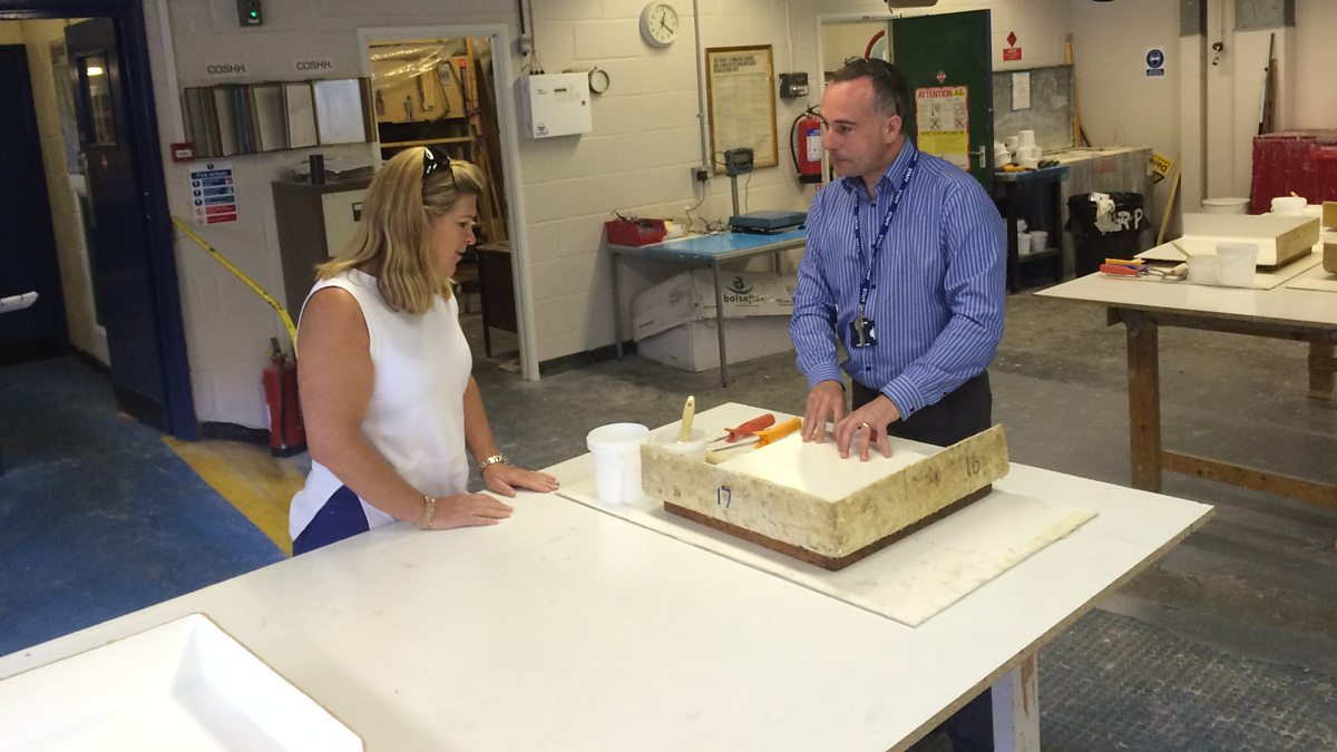 Gary Fisher explains the work of the composite workshop to Shelley Jory-Leigh.
