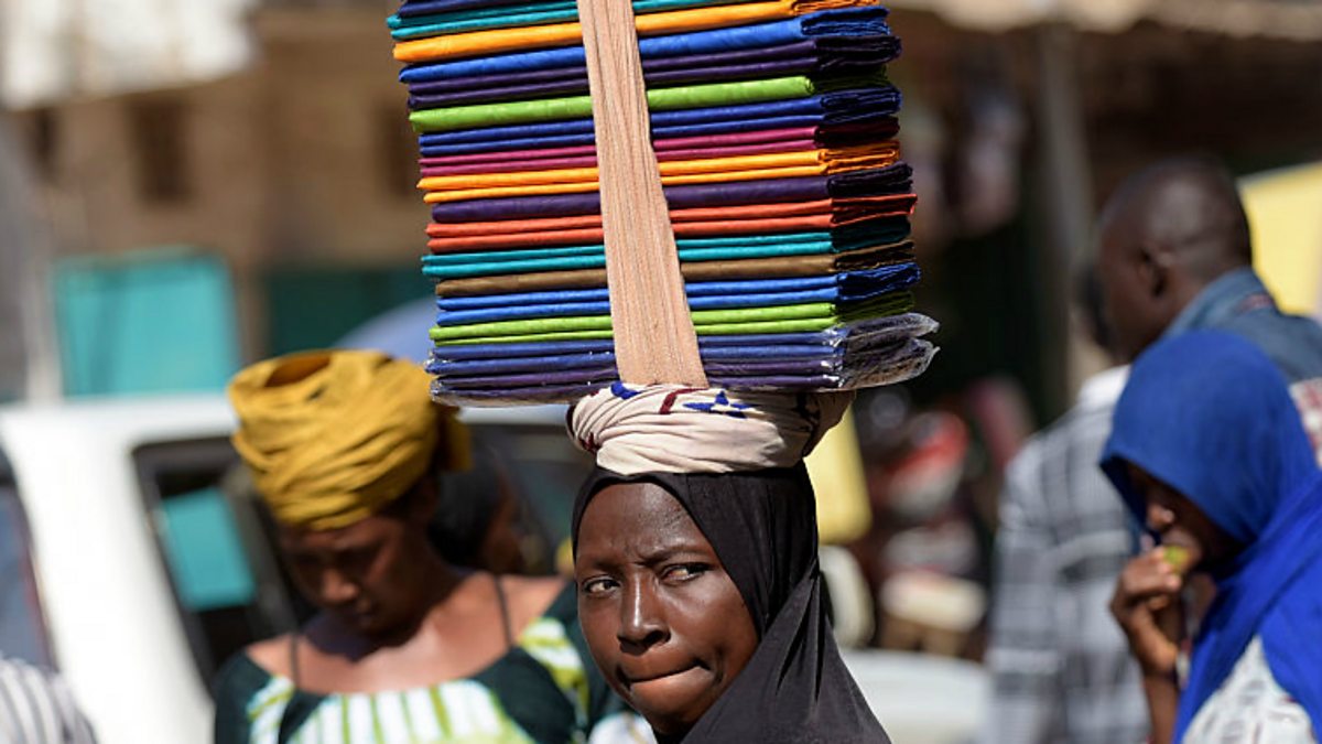 Picture: Woman carrying fabrics in the Gambia, Credit: Getty Images