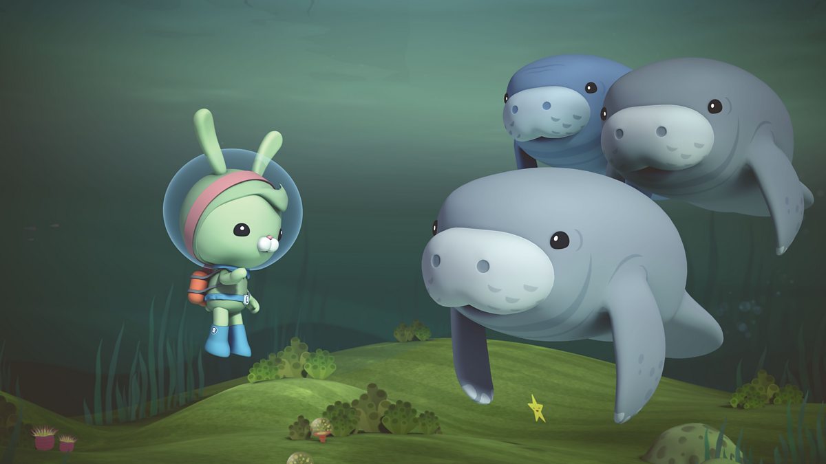 Mae'r Octonots yn canu cân am fôr-fuchod. The Octonots sing a song about manatees.