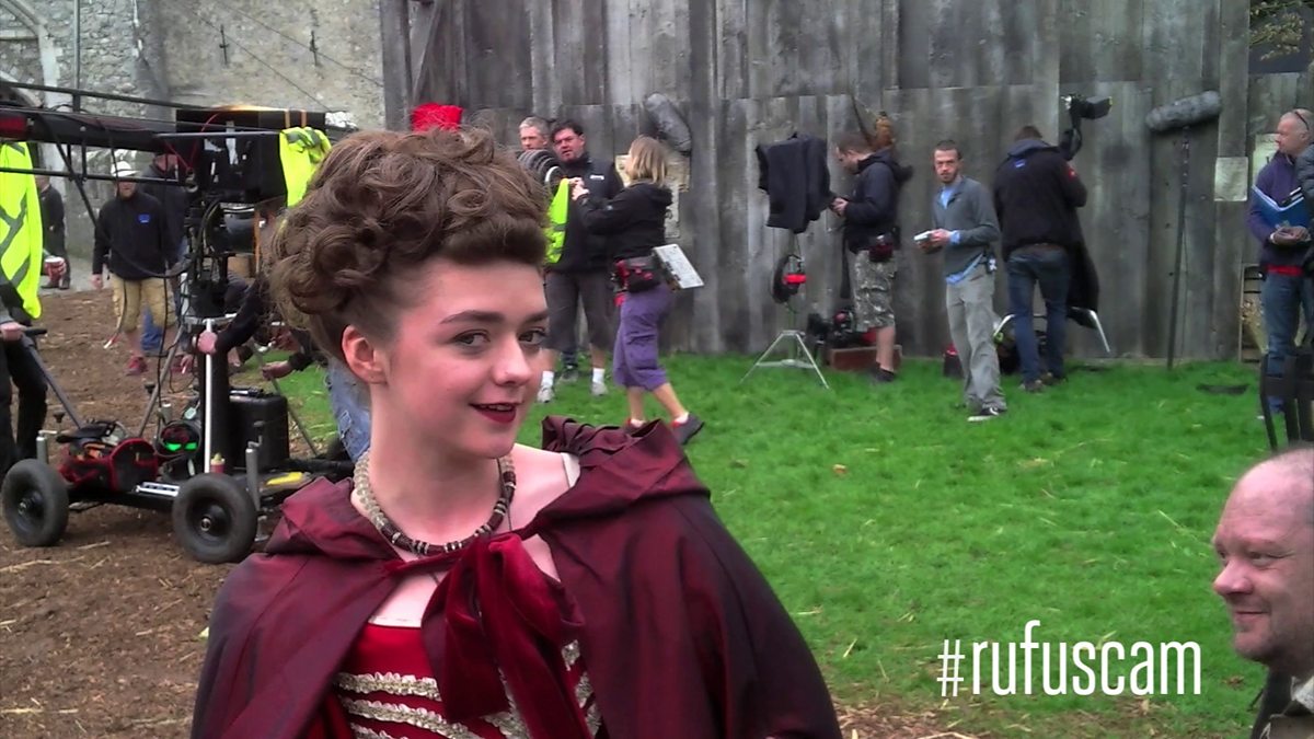 Rufus Hound and Maisie Williams play a quiz between takes.