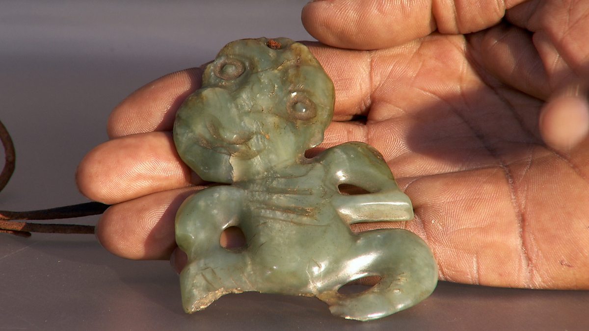 A jade Maori pendant dug up in the garden of a 17th century house stuns Ronnie Archer Morgan.